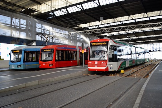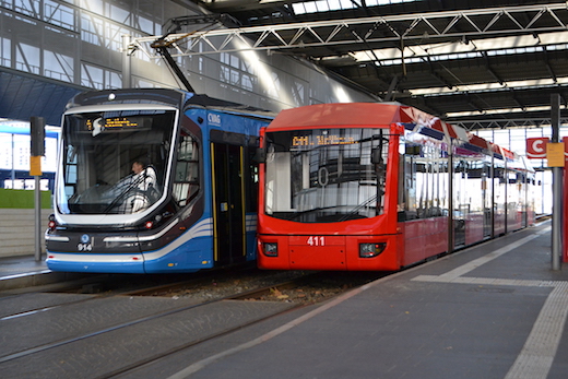 ![]() Links CVAG Tw 906 (Bauart 6NGT-LDZ), in der Mitte Variobahn Tw 414 (Bauart 6NGT-LDZ, DB-tauglich), rechts Tw 433