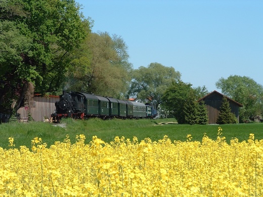 ![]() Rapsfeld und Dampfzug - eine farbenfrohe Kombination
