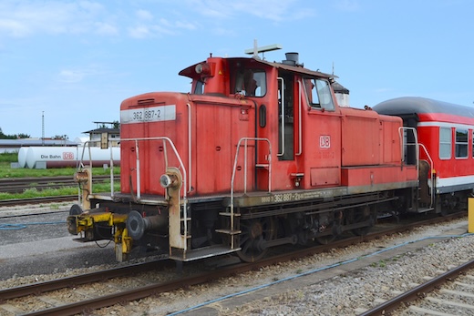 ![]() 362 887 beim Verschieben von n-Wagen im Bahnhof Mühldorf (10.08.2014) ![]() 217 002 fährt 2014 für Bahn Touristik Express BTE (10.08.2014)