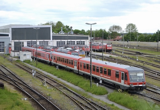 612 ist im Bw-Gelände abgestellt. Die Triebwagen dieser