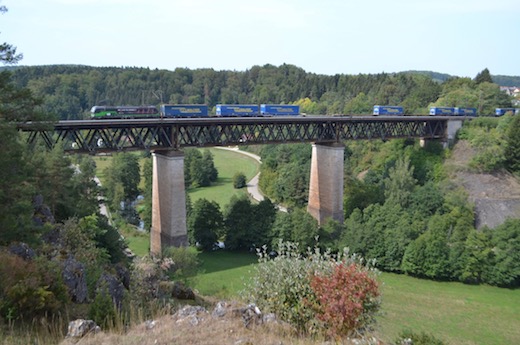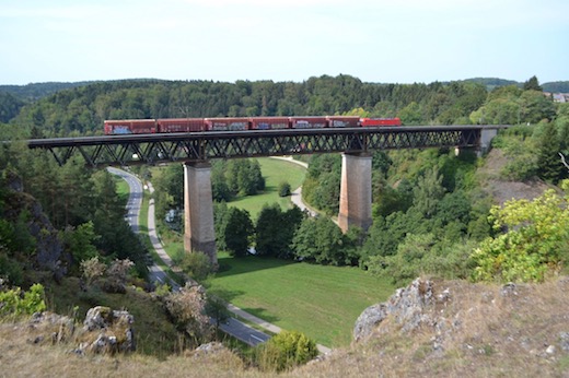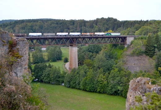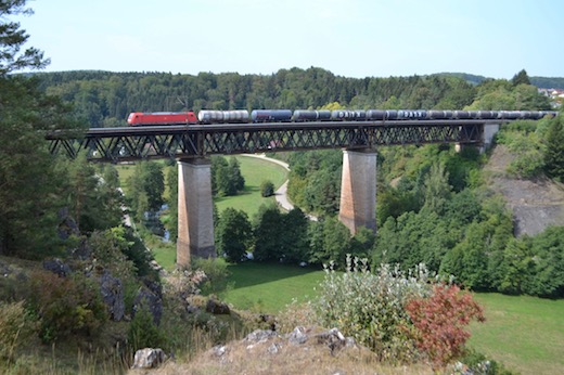 - Regensburg ist Teil einer der wichtigsten Bahnverbindungen nach Osteuropa. Dementsprechend hoch ist auch und vor allem der Güterverkehr. Dies bewog mich schon vor längerer Zeit zur Planung eines Foto- events an die 187 Meter lange Stahlgitterbrücke über das Tal der Schwarzen Laber südlich von Beratzhausen, wie ich finde einen der schönsten Fotostellen zwischen Nürn- berg