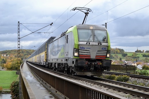 ![]() BLS Cargo 475 435 mit ARS-Autozug in Richtung
