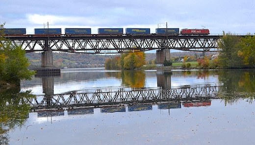 der Donaubrücke bei Mariaort unweit von Sinzing (17.10.2025) ![]() Eine DB 185er mit leerem Containerzug in Richtung Passau auf