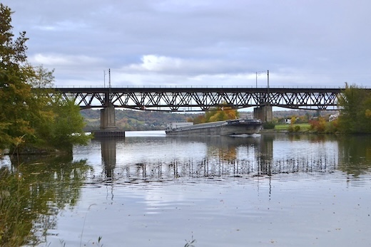 ![]() MS "Henri" unter der Donaubrücke in Richtung Norden bei Mariaort unweit
