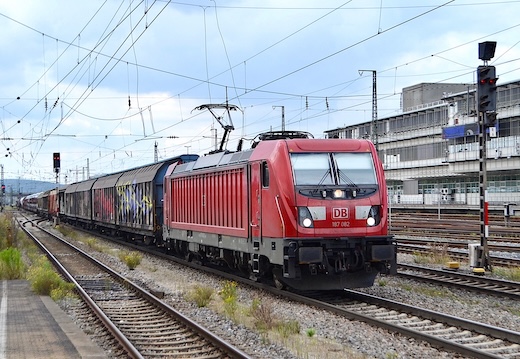 ![]() 187 082 mit gemischtem Güterzug in