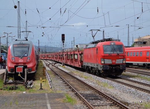 ![]() DB 193 376 mit leerem Autozug in