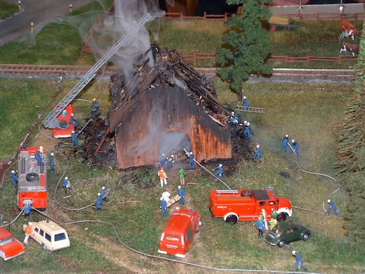 inzwischen beachtlichen Streckenlänge sind variabel kombinierbar und werden auch nicht immer - je nach Platzbedarf - alle gezeigt. Das Besondere: Im Mittelpunkt steht nicht nicht nur die Eisenbahn. Viele der Module erzählen eine kleine Begebenheit entlang der Strecke. Meine bescheidenen Fotos - sicher keinesfalls Meisterwerke,