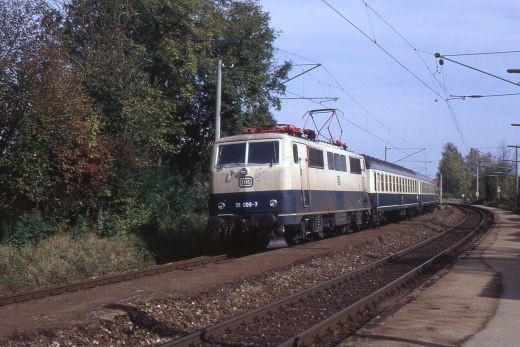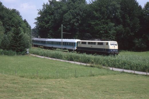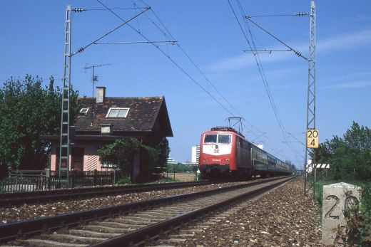 ![]() 111 068 mit Interregio nach München bei Oberschleißheim (07.05.1994)