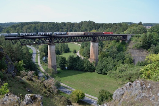 - Regensburg ist Teil einer der wichtigsten Bahnverbindungen nach Osteuropa. Dementsprechend hoch ist auch und vor allem der Güterverkehr. Dies bewog mich schon vor längerer Zeit zur Planung eines Foto- events an die 187 Meter lange Stahlgitterbrücke über das Tal der Schwarzen Laber südlich von Beratzhausen, wie ich finde einen der schönsten Fotostellen zwischen Nürn- berg