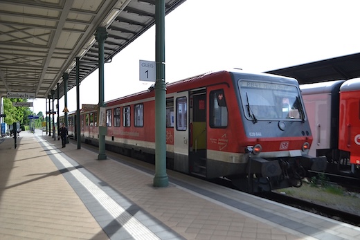 Am Bahnsteig 1 wartet 628 646 auf die Abfahrt nach