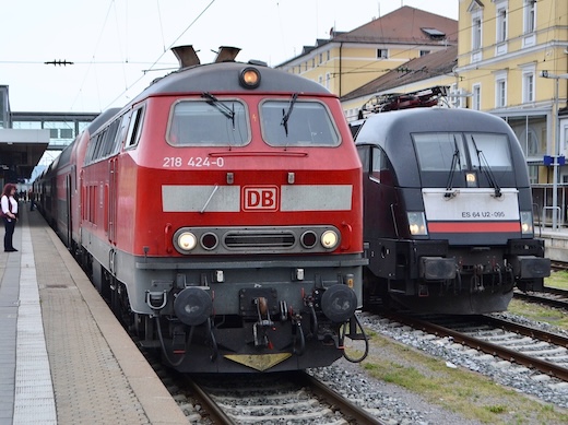 ![]() 218 424 und Länderbahn 223 068 in Regensburg Hbf (21.06.2024)