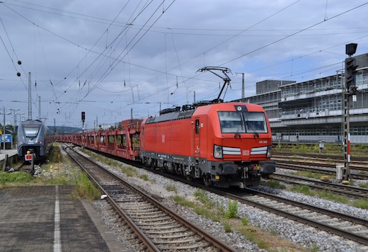 ![]() DB 193 376 mit leerem Autozug in