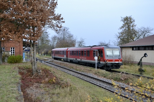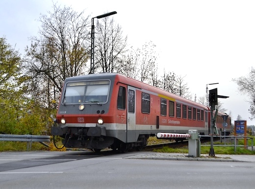 Bahnhofstraße gekreuzt. Zur Sicherung dient eine Halb- schrankenanlage (14.11.2025) ![]() 628 629 im Bahnhof Bogen. Als