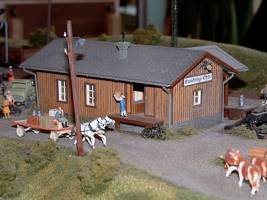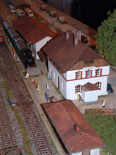 inzwischen beachtlichen Streckenlänge sind variabel kombinierbar und werden auch nicht immer - je nach Platzbedarf - alle gezeigt. Das Besondere: Im Mittelpunkt steht nicht nicht nur die Eisenbahn. Viele der Module erzählen eine kleine Begebenheit entlang der Strecke. Meine bescheidenen Fotos - sicher keinesfalls Meisterwerke,