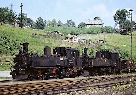 ![]() 99 1582 und 99 1568 kalt abgestellt im Bahnhof Jöhstadt.