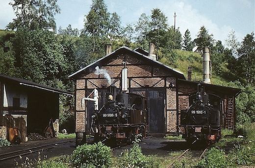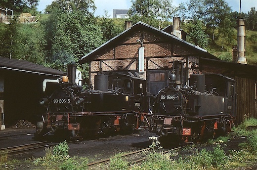 ![]() 99 1606 und 99 1585 (kalt) in der Einsatzstelle Jöhstadt
