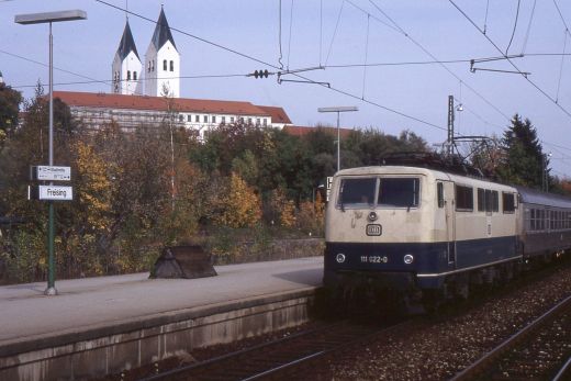 111 024 mit Interregio Dresden - Oberstdorf bei Freising (Herbst 1993)